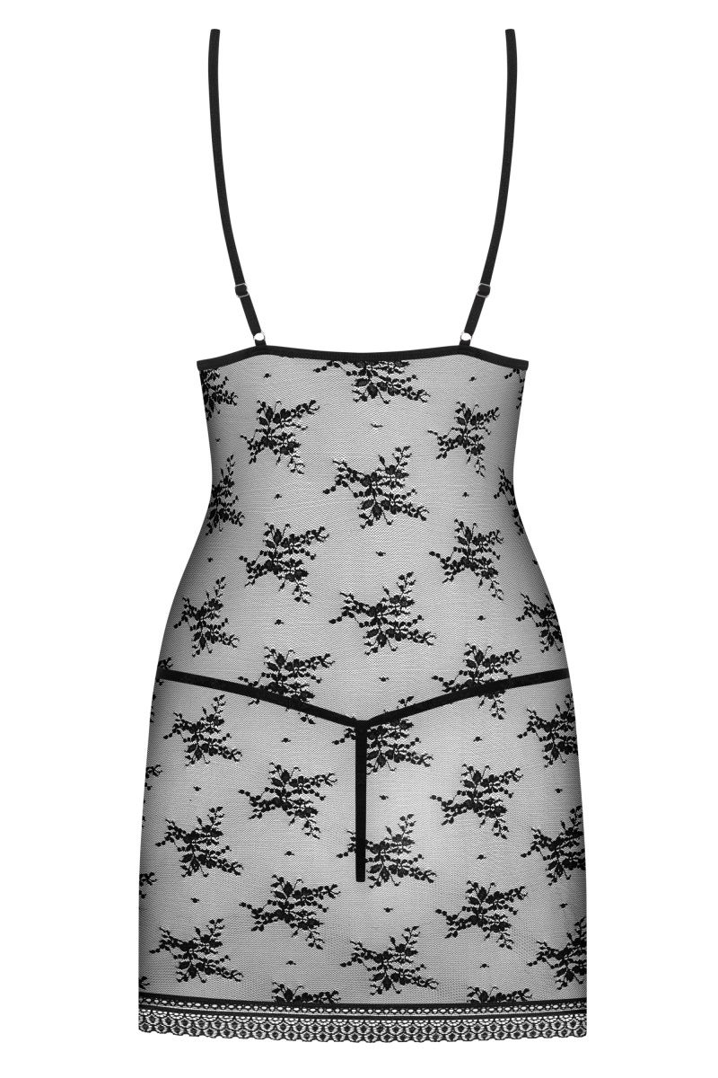 Детали: прозрачная черная сорочка идеально облегает тело, регулируемые бретели гарантируют комфорт при ношении, кружевная вставка и бантик на груди - привлекающие внимание детали, цветочный узор на сетке - манящий образ, кружевной подол, красивая эластичная ткань Multistretch.