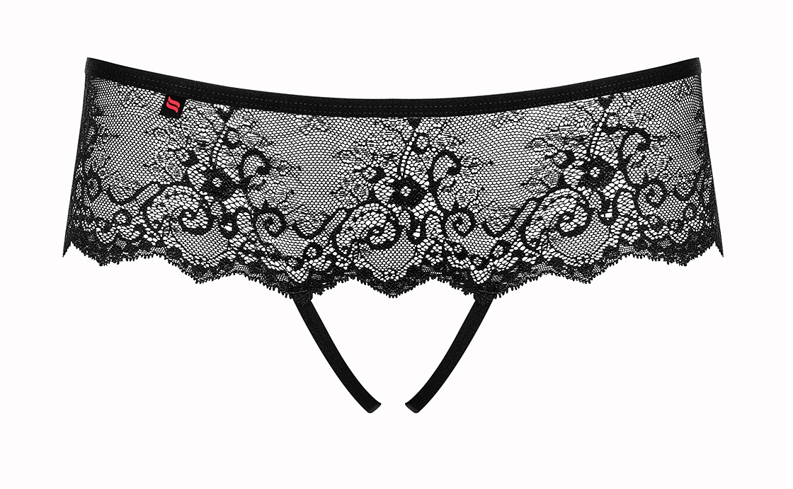 Детали: широкое кружево с нежным цветочным узором, резинки создают пикантную открытую промежность, шов между ягодицами соблазнительно подчеркивает формы, мерцающий декор на ягодицах (NickelFree - без никеля), деликатные эластичные ткани.