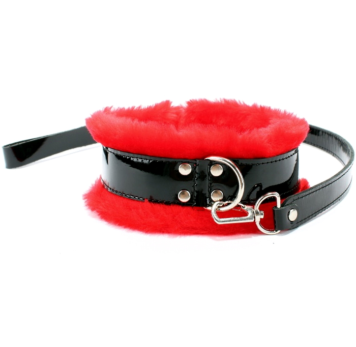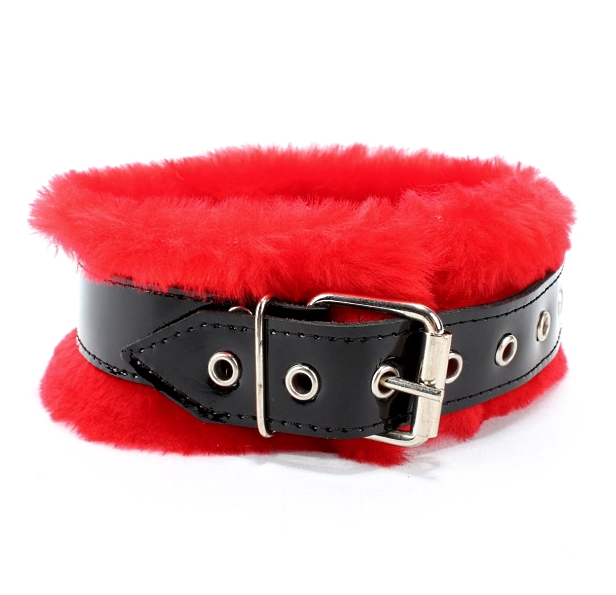 Ошейник выполнен из натуральной лакированной кожи черного цвета. Подклад выполнен из мягкого эко-меха красного цвета.