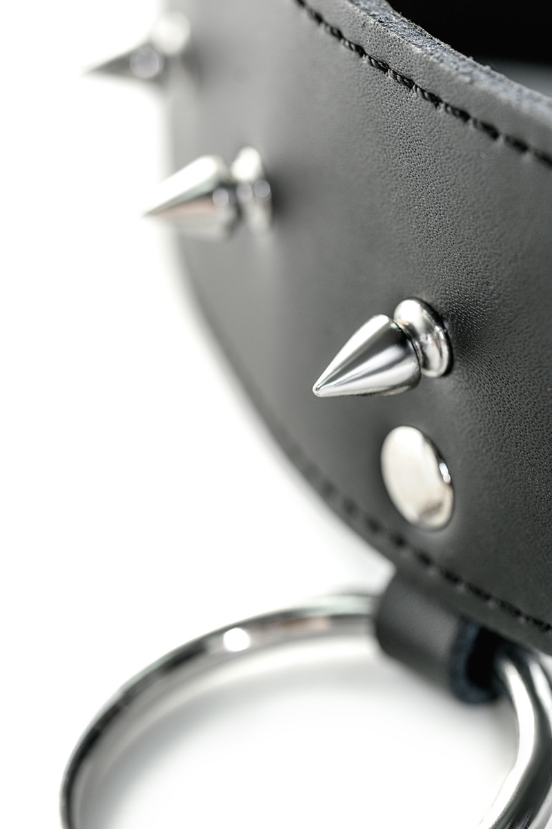 а ошейнике имеется металлическое кольцо на которое можно зафиксировать наручники или прицепить поводок.