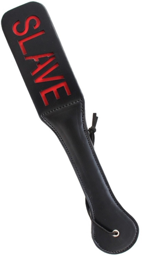 Удары по нежной попке будут оставлять красные отметины в виде надписи Slave, но будьте осторожны: сама шлепалка все же бьет не в шутку!