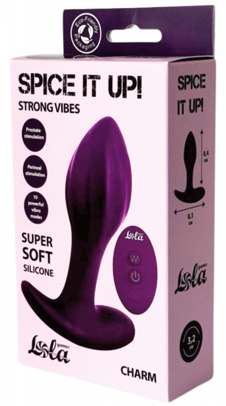 Перезаряжаемая анальная втулка Spice It Up Charm с пультом ДУ - идеальный