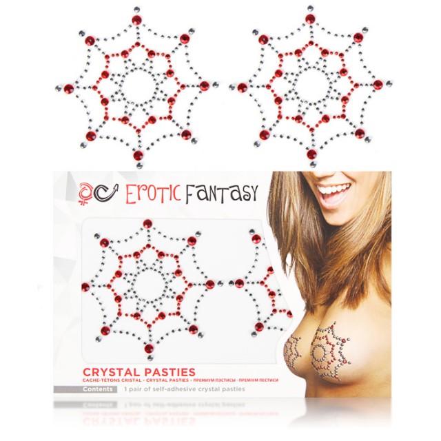 Он точно попадется в твои сети! Роскошные пэстисы-наклейки из кристаллов двух цветов - черного и красного, выложенных паутинкой. Очень яркий, стильный аксессуар который добавит сексуальности Вашему образу. Используй кристал пэстис для свидания в спальне, или когда выбираешь платья и топы с глубоким декольте. Если ты выбрала эротичный образ - то особенно соблазнительно выглядят пэстисы в паре с сетчатым белье. Выбирай контрастный цвета, чтобы быть более яркой! Пэстисы на гипоаллергенной клейкой основе. Подробная инструкция внутри упаковки.