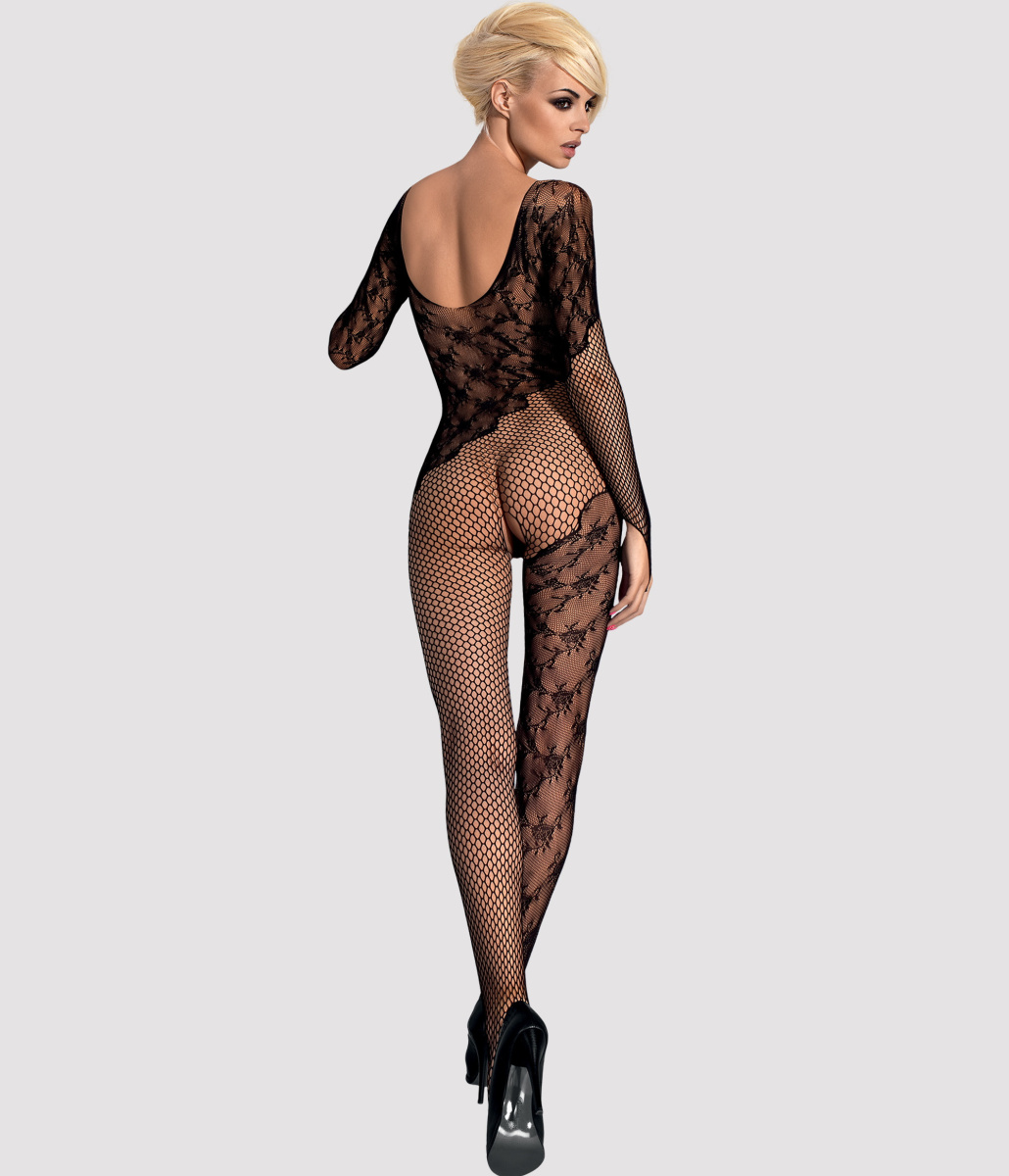 Детали: глубокий, подчеркивающий декольте вырез, длинные рукава с прорезью для пальцев, все декорировано цветочным узором, умело сочетающимся с сеткой, открытая промежность, очень красивый, эластичный материал.