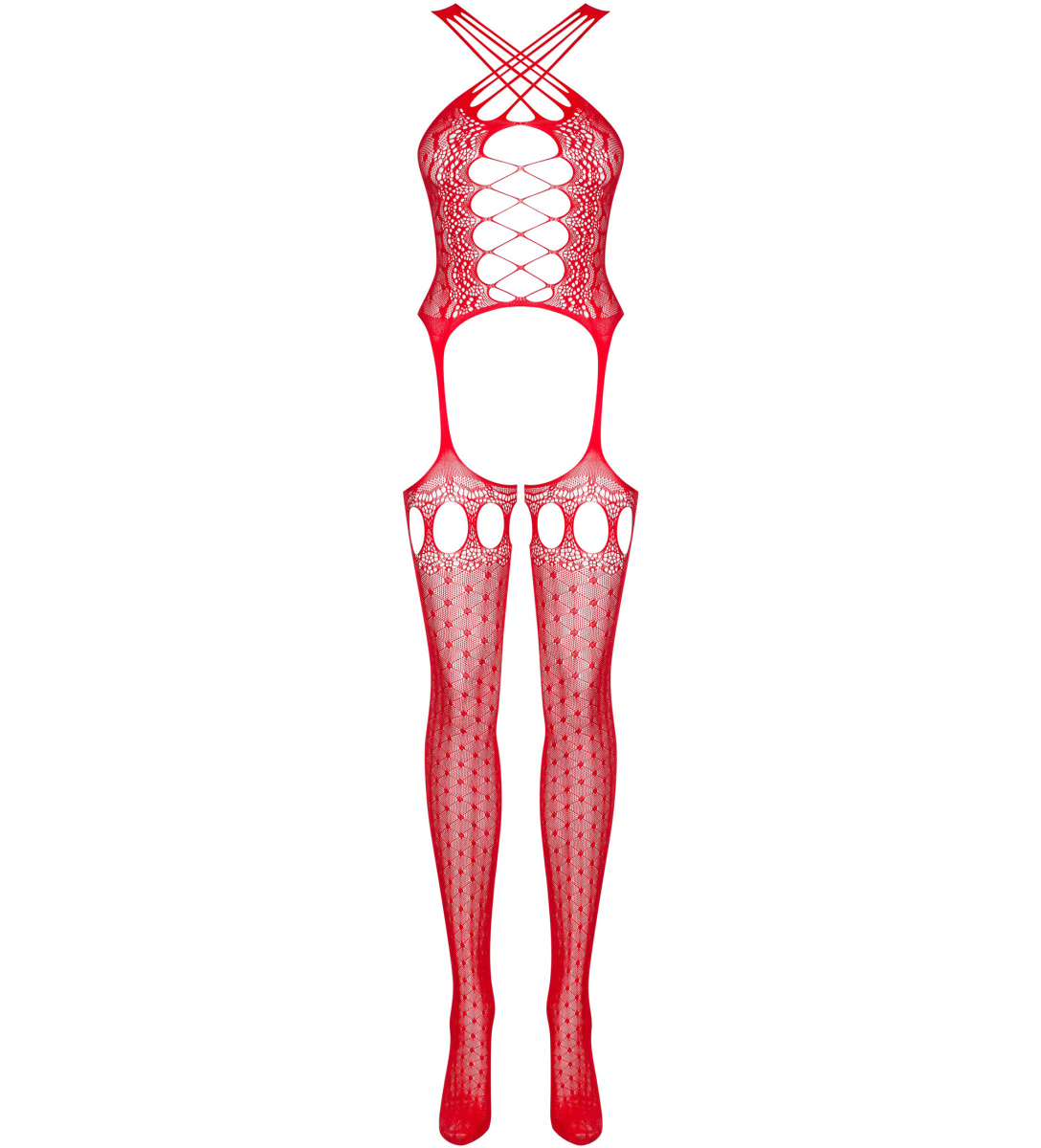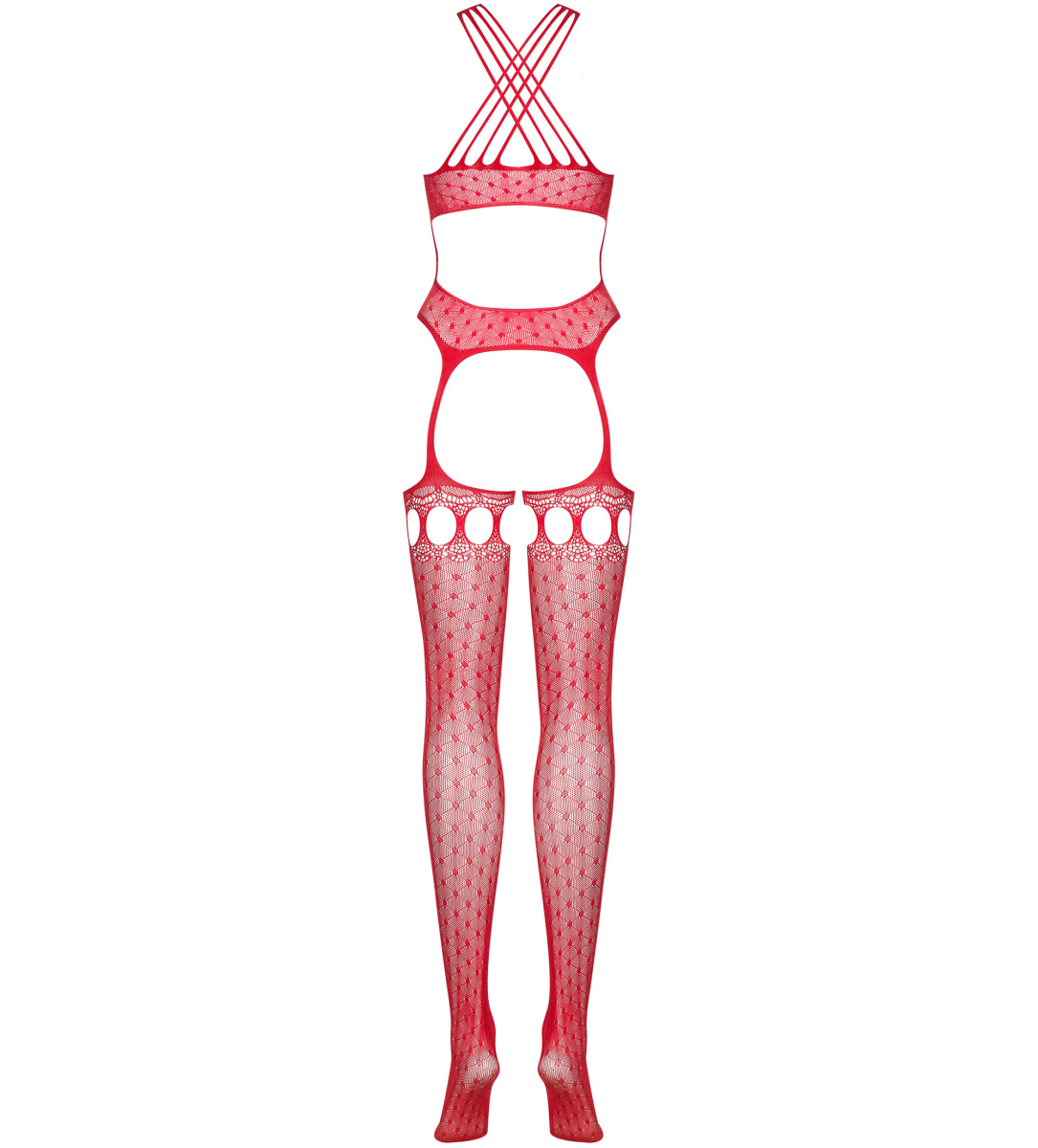 Открытый боди-комбинезон в мелкую сеточку выполнен из мягкой и