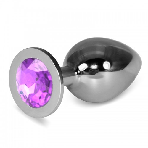 Гладкий маленький плаг из отполированной до блеска стали с кристаллом светло-фиолетового цвета в основании.
