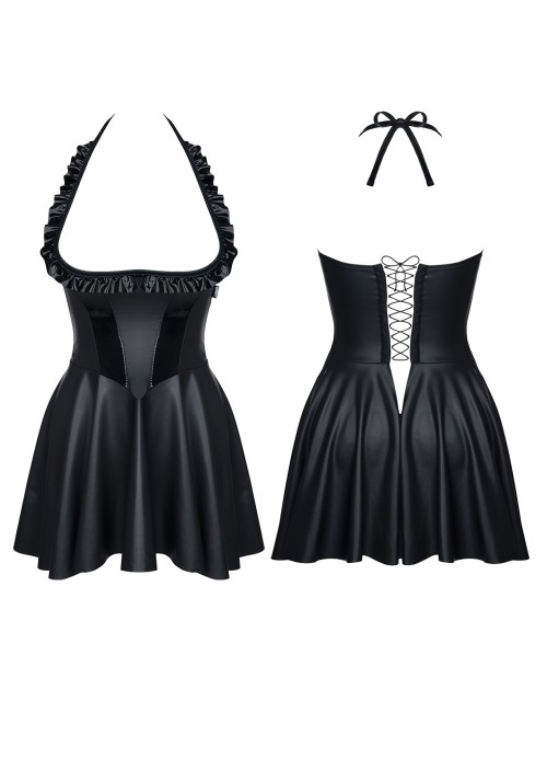 Сделан он из эластичного материала с мокрым эффектом, который не деформируется