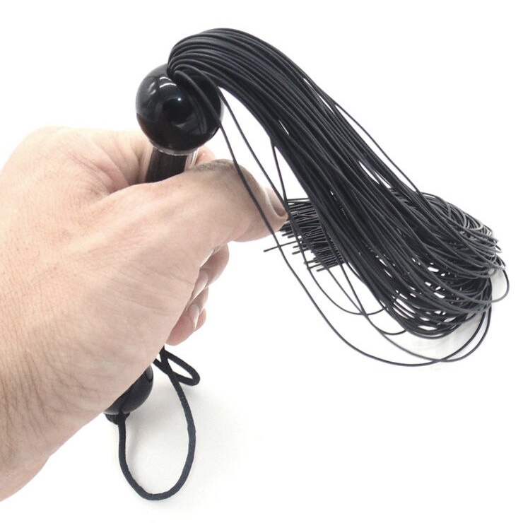 Удобная ручка позволяет крепко держать плеть в руках, а резиновые хвосты нежно обжигают даже при слабом ударе.