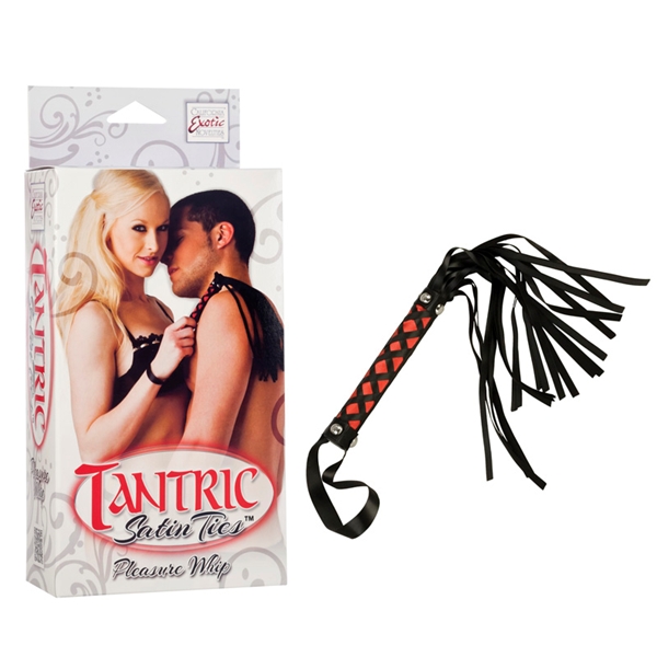 Плетка с короткими атласными тонкими шнурами черного цвета.