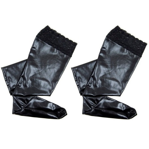 Встречайте сексуальные черные чулочки из блестящего материала с имитацией под кожу!