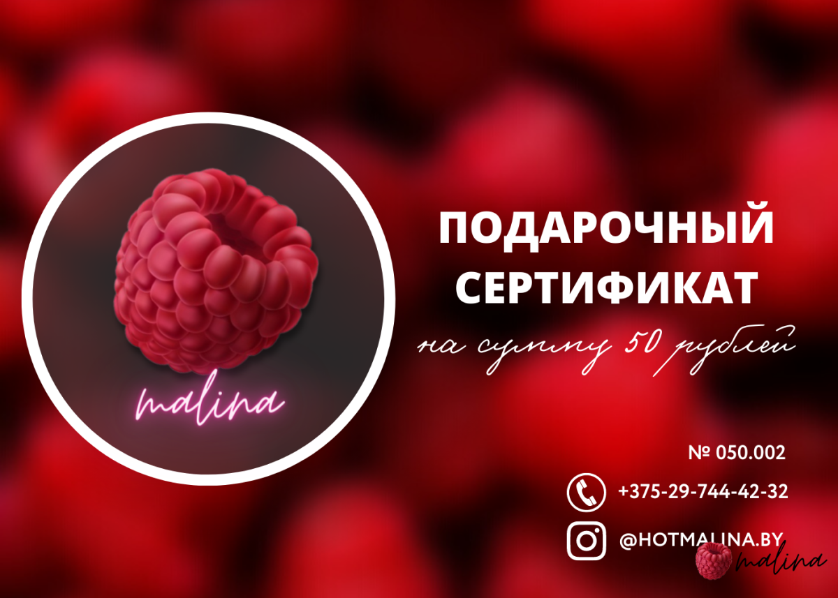 Сертификат дает предъявителю право на покупку любых товаров, представленных в магазине интимных товаров "HotMalina.by".