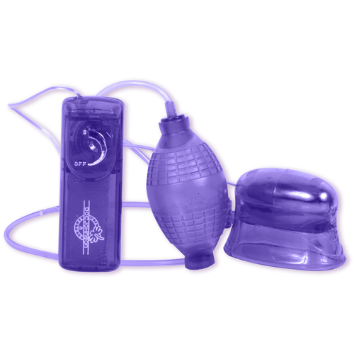 Фиолетовая вакуумная помпа для клитора с вибрацией. При помощи груши откачивается воздух из помпы, создается эффект орального секса, а набухший клитор подвергается воздействию вибрации. Если женщина испытывает трудности с достижением оргазма - то с этой помпой оргазм перестанет быть проблемой.