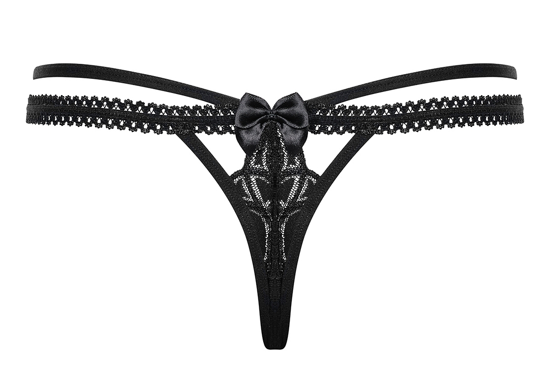 Детали: сексуальные стринги необычного кроя, нежная кружевная ткань с соблазнительными разрезами, кружево и эластичные полосы - соблазнительно подчеркнутные бедра, игривый бантик спереди и сзади - милые украшения, приятные на ощупь эластичные ткани.