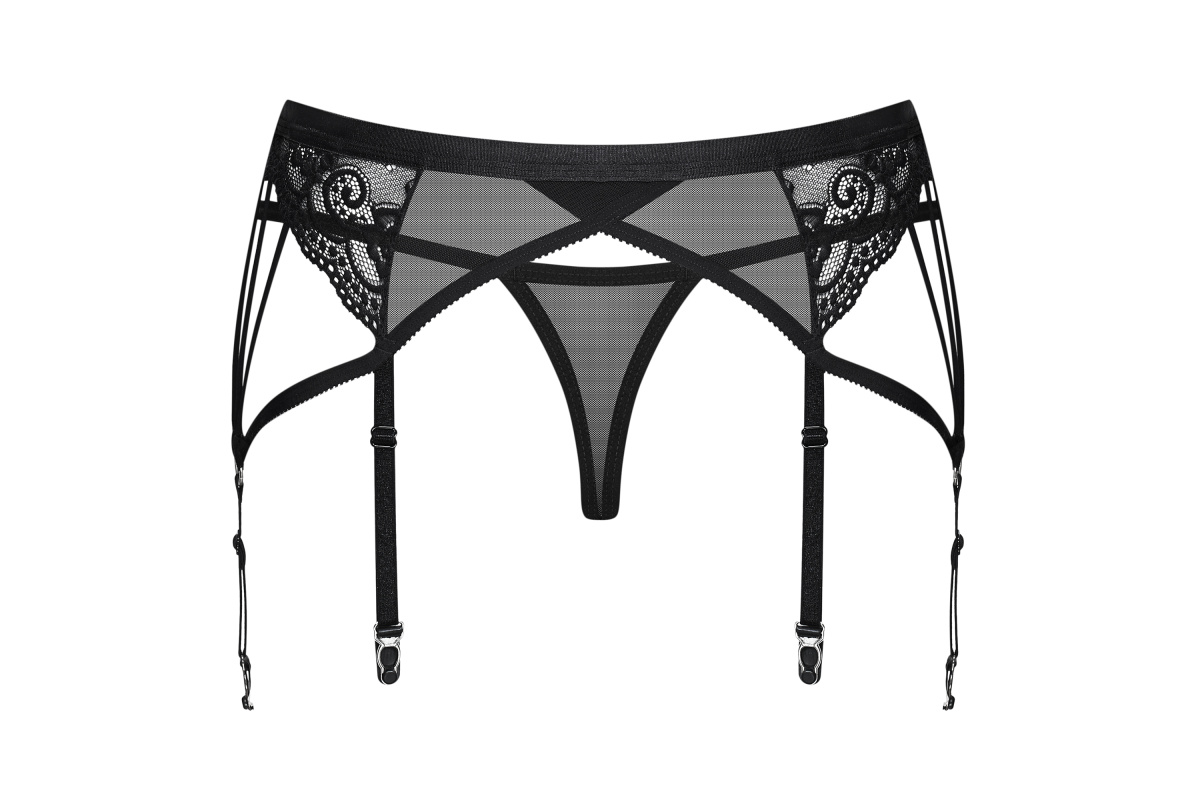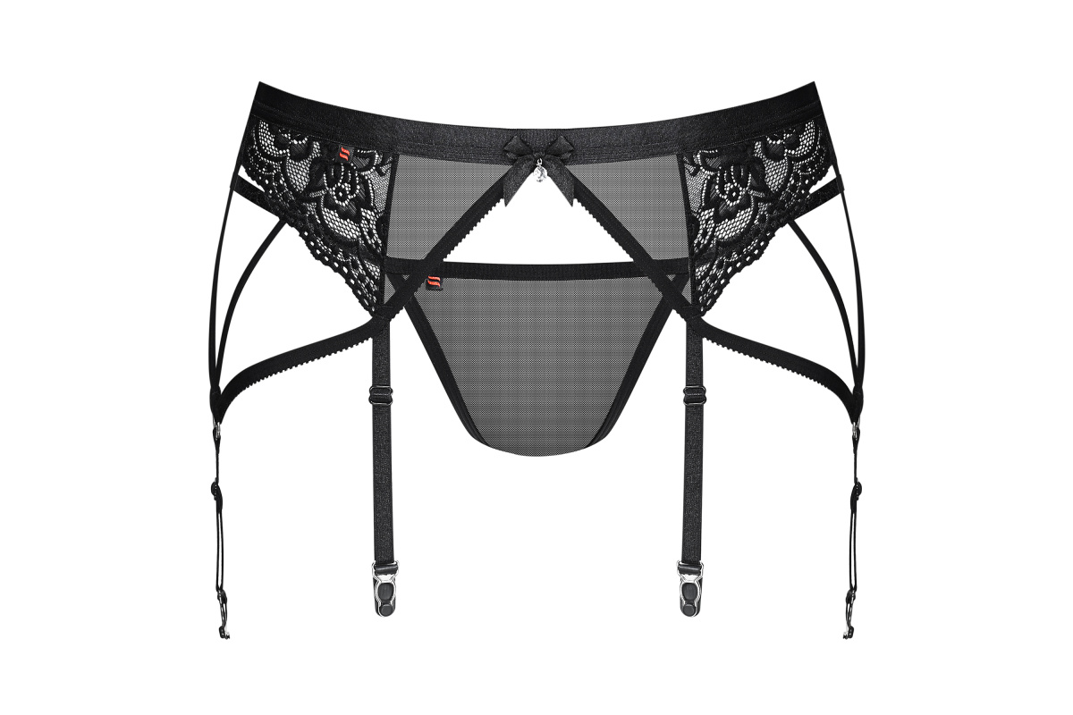 Детали: сочетание нежной сетки и красивого кружева, удобный, отлично растягивающийся ремешок, шесть регулируемых лямок для чулок (четыре стандартных и две дополнительные по бокам бедер) - отличная поддержка чулок, возможность регулировки и очень сексуальный вид, украшение в виде кристалла и банта спереди, приятная на ощупь эластичная ткань.