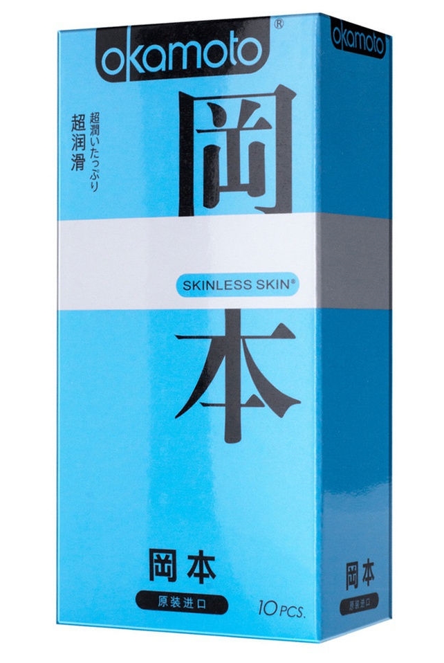 OKAMOTO Skinless Skin Super Lubricative - классические прочные презервативы стандартной цилиндрической формы с накопителем и обильным количеством смазки, обеспечивающие надежную интимную защиту и не снижающие яркость ощущений во время занятия сексом.