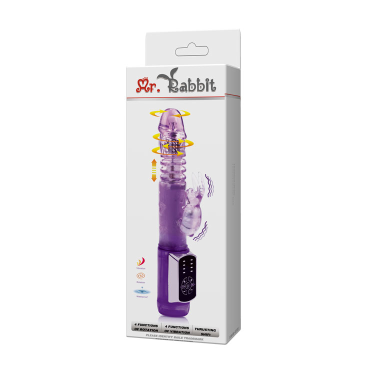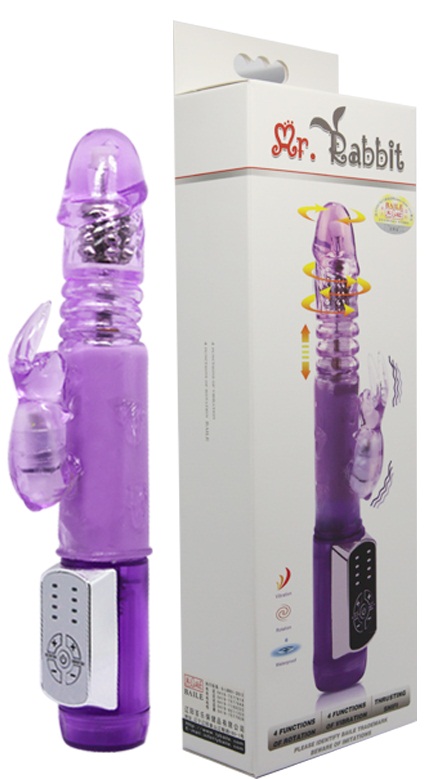 Вибратор Hi-Tech Mr. Rabbit Up and Down фиолетового цвета с функцией пульсации, вращения ствола и мощным клиторальным стимулятором в виде зайчика покорит Вас с первой минуты!