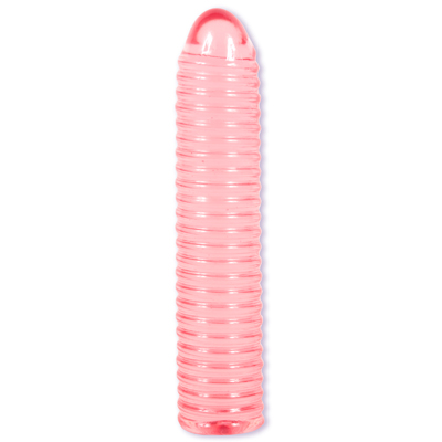 Гелевый розовый фаллоимитатор с рельефной спиральной поверхностью.