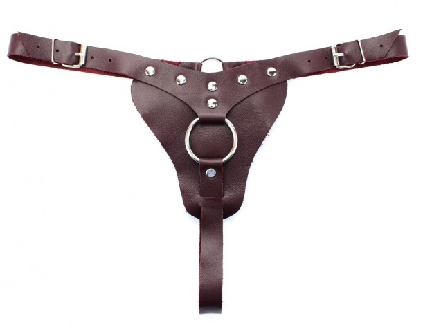 Спереди находится металлическое кольцо для страпона. Изделие фиксируется ремнями и пряжками, позволяющими подобрать нужный размер. Сочный и дерзкий аксессуар поможет воплотить задуманное в реальность! Нежный и страстный аксессуар станет отличным дополнение к Вашей БДСМ игре.