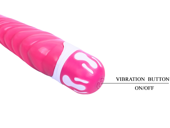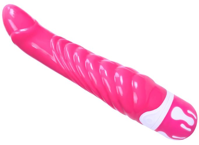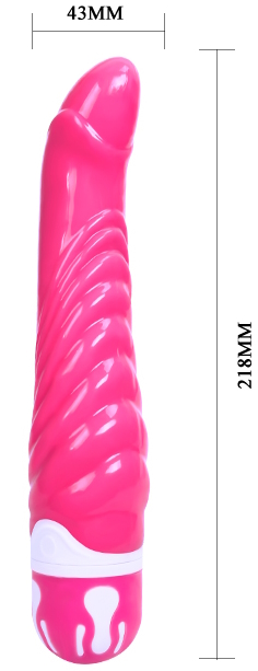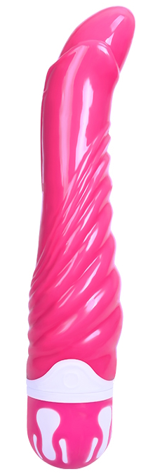 Вибратор имеет загнутую головку и выраженный рельефный рисунок по всей длине.