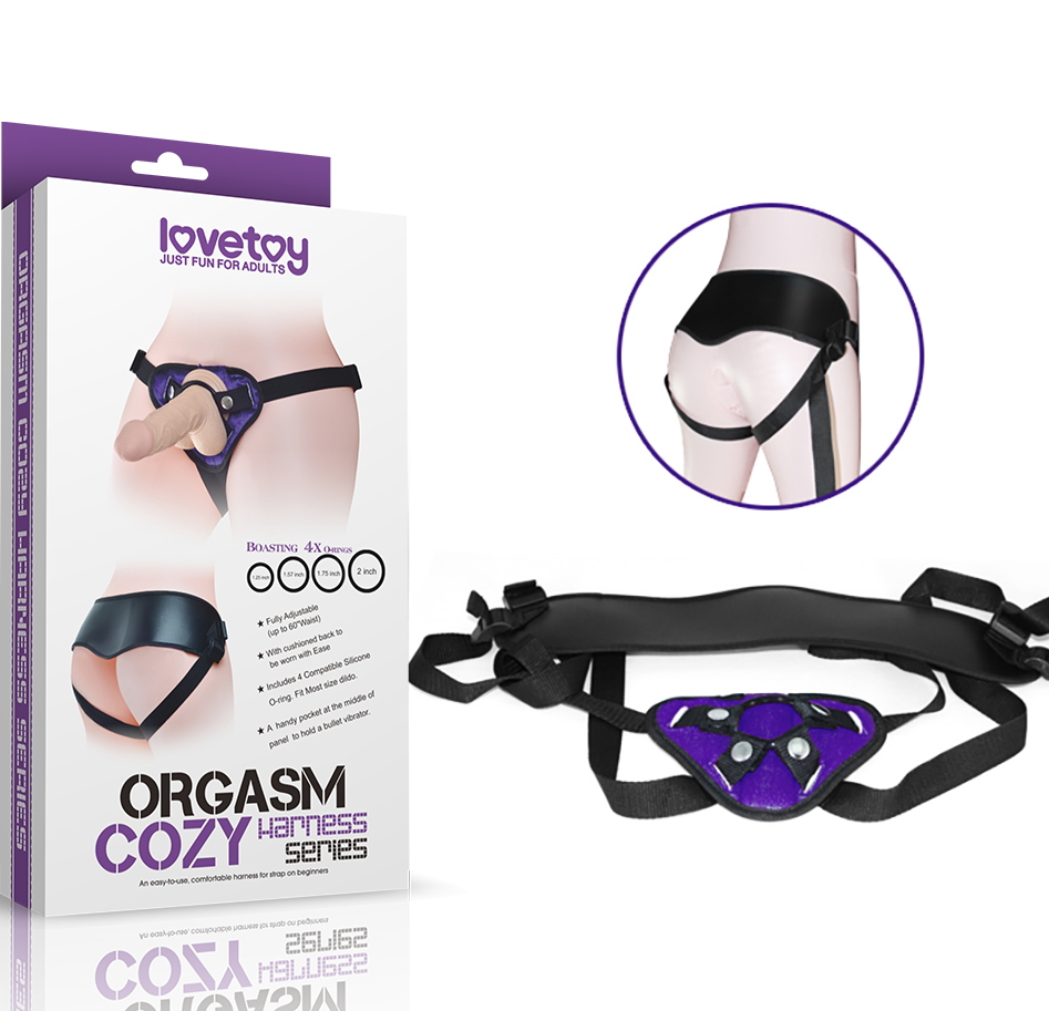 Комплектация: ремень для страпона с мягкой спинкой, четыре силиконовых уплотнительных кольца разного диаметра.