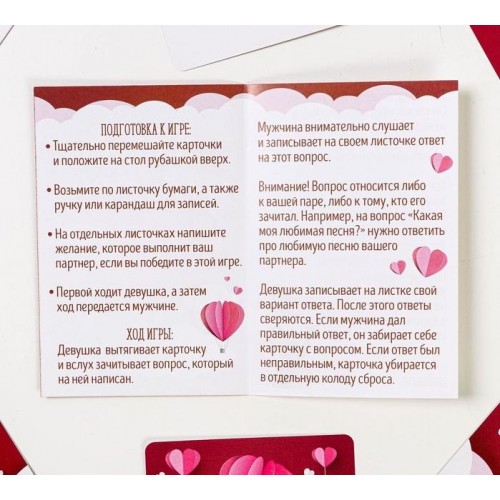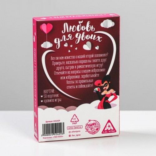 Отвечайте на вопросы о своей второй половинке, зарабатывайте баллы за правильные ответы и побеждайте. Узнайте друг о друге всё, и даже больше, а 50 волшебных карточек помогут Вам в этом!