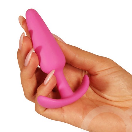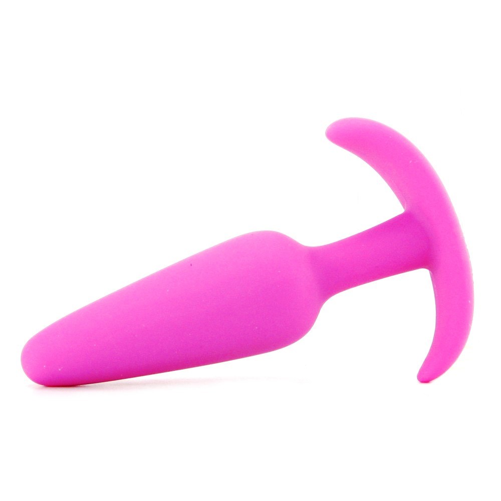 Розовая упругая анальная пробка из гладкого силикона с необычным ограничительным основанием, которое совершенно не ощущается, но полностью выполняет свои функции по безопасности анального наслаждения.