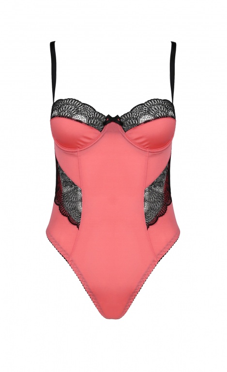 Элегантное боди Rosalie с чашечками на косточках и эффектом растягивания, великолепного розового оттенка и довольно контрастных деталей черного кружева, которое придает ему оригинальности. Благодаря регулируемым бретелькам, каждая женщина сможет идеально подобрать для своей фигуры нужный размер.