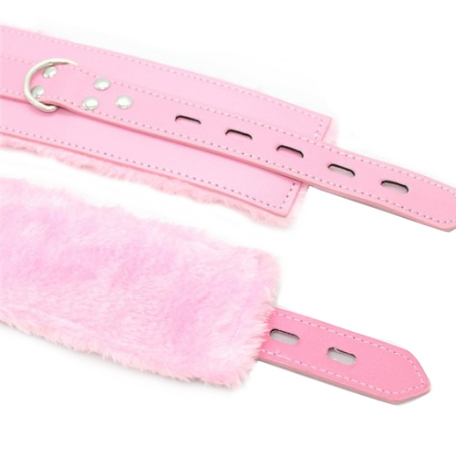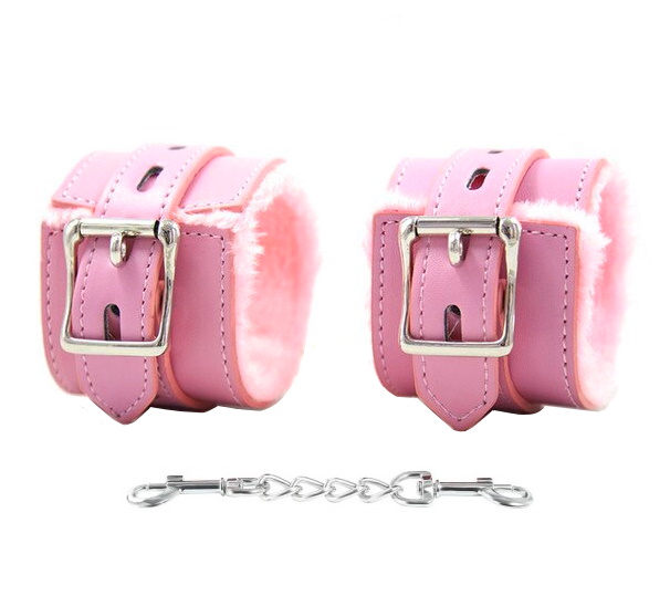 Наручники не причинят боли, так как их внутренняя сторона отделана нежным мехом. Соединяются между собой цепочкой с двумя карабинами на концах.