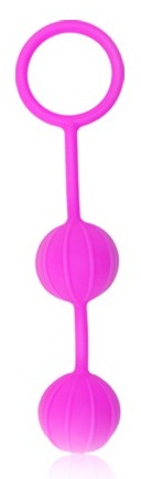 Яркие розовые вагинальные шарики и на каждом шарике рельефный рисунок.