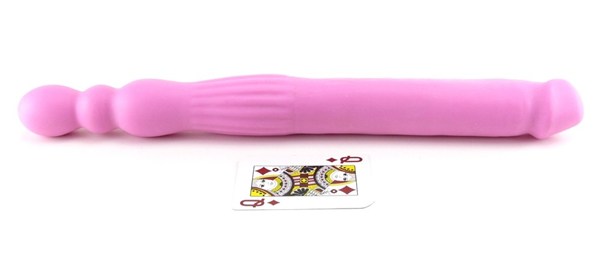 Двухсторонний фаллоимитатор розового цвета из термопластичной резины, с двумя разными концами.