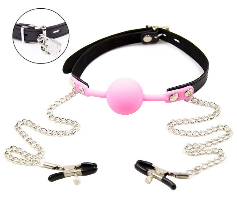 Кляп невозможно выплюнуть, он надежно фиксируется при помощи ремешка, который регулируется с помощью пряжки и фиксируется замочком.
