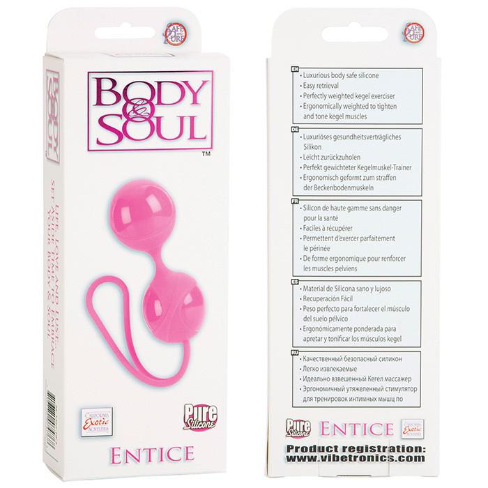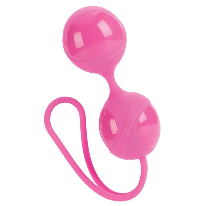 Розовые вагинальные шарики на силиконовой сцепке, частично покрытые силиконом и пластиком высочайшего качества.