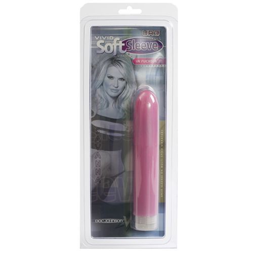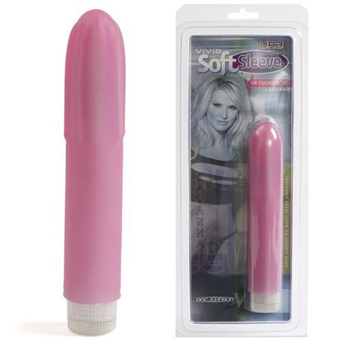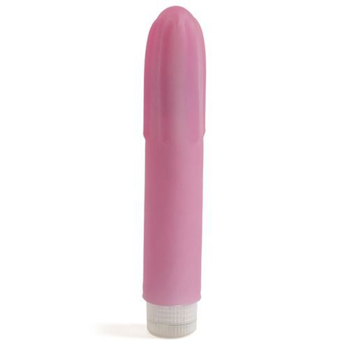 Розовый вибратор с мягкой насадкой из UR3 с утолщенными желобками на головке.