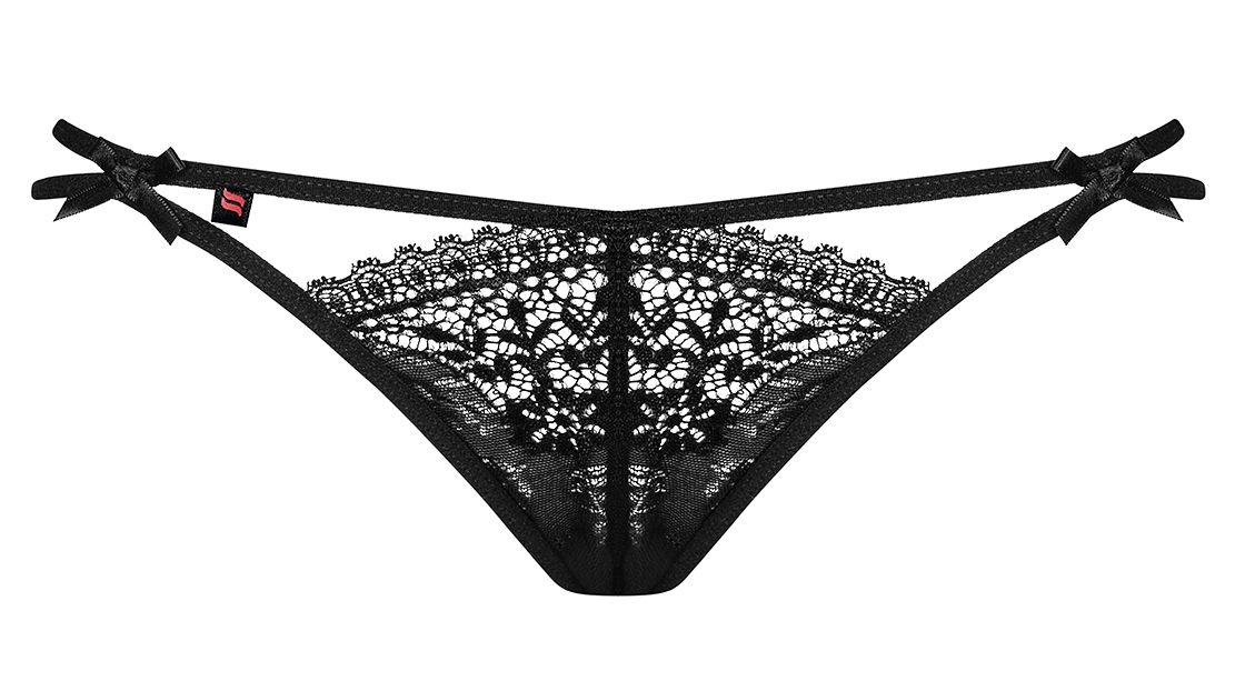 Детали: стринги из элегантного кружева, две интригующие эластичные лямки на бедрах, сладкие бантики спереди и над ягодицами добавляют шарма, эластичная и приятная ткань.