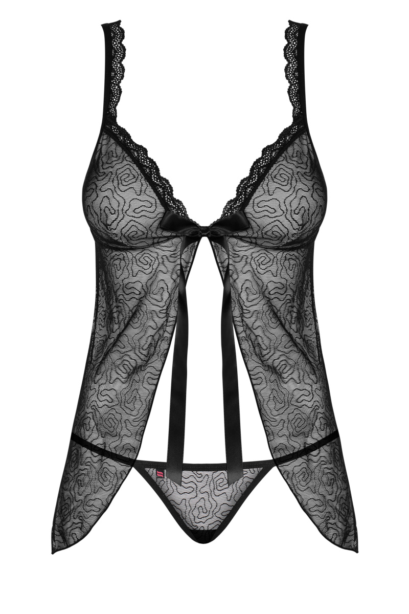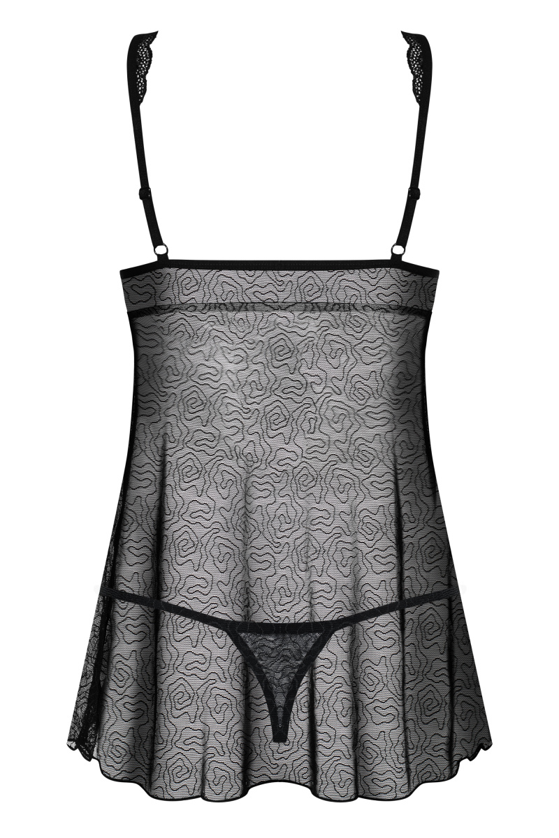 Сексуальный беби-долл выполнен из приятной черной прозрачной сетки с красивым декором.