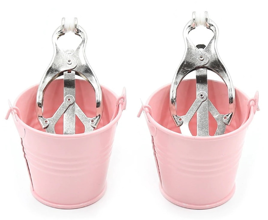 Ведерки, которые прикреплены к зажимам, позволят расширить круг воплощаемых фантазий - Вы сможете положить в них дополнительные утяжелители, чтобы еще больше обострить ощущения.