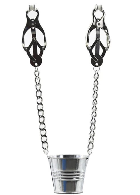 Ведерко, которое прикреплено цепями к зажимам, позволит расширить круг воплощаемых фантазий - Вы сможете положить в него дополнительные утяжелители, чтобы еще больше обострить ощущения.