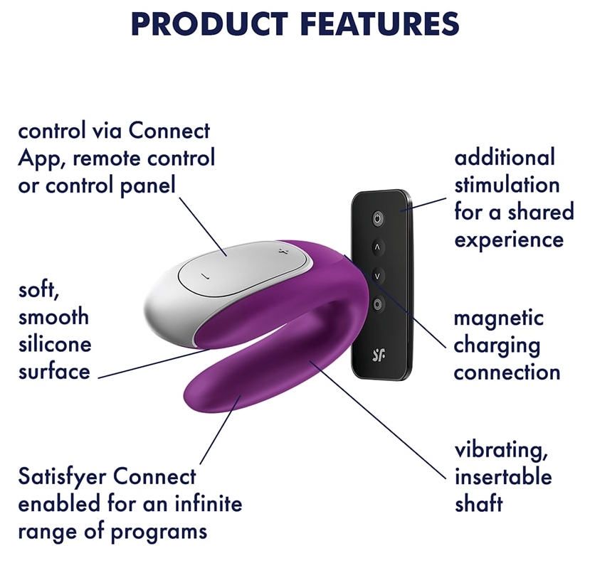 Новое приложение Satisfyer Connect предлагает вам уникальные возможности, оно совместимо с любым Android или Apple смартфоном, планшетом и Apple Watch. Дистанционное управление позволит наслаждаться не только стандартными программами, но и эксклюзивными функциями по созданию своих собственных режимов вибрации.