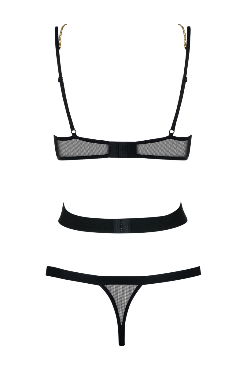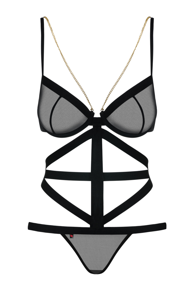Детали: эластичные ленты-резинки, подчеркивающие форму тела, чашки на косточках - идеальный бюст, регулируемые лямки - комфортная посадка, соответствующие резинки на талии и на животе, цепочка - идеальная деталь (не содержит никель), деликатные ткани и резинки.