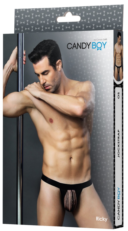 Трусики-джоки черного цвета сексуально оголяют ягодицы, а так же имеют полупрозрачную вставку из ткани посредине!