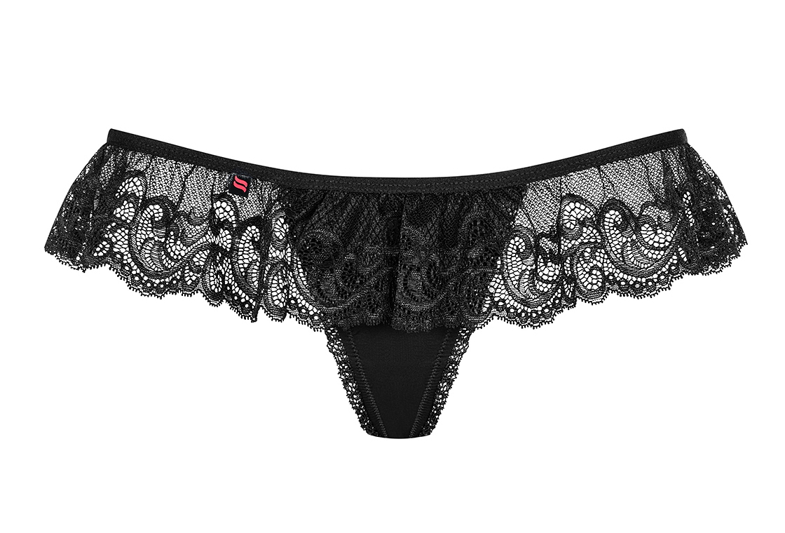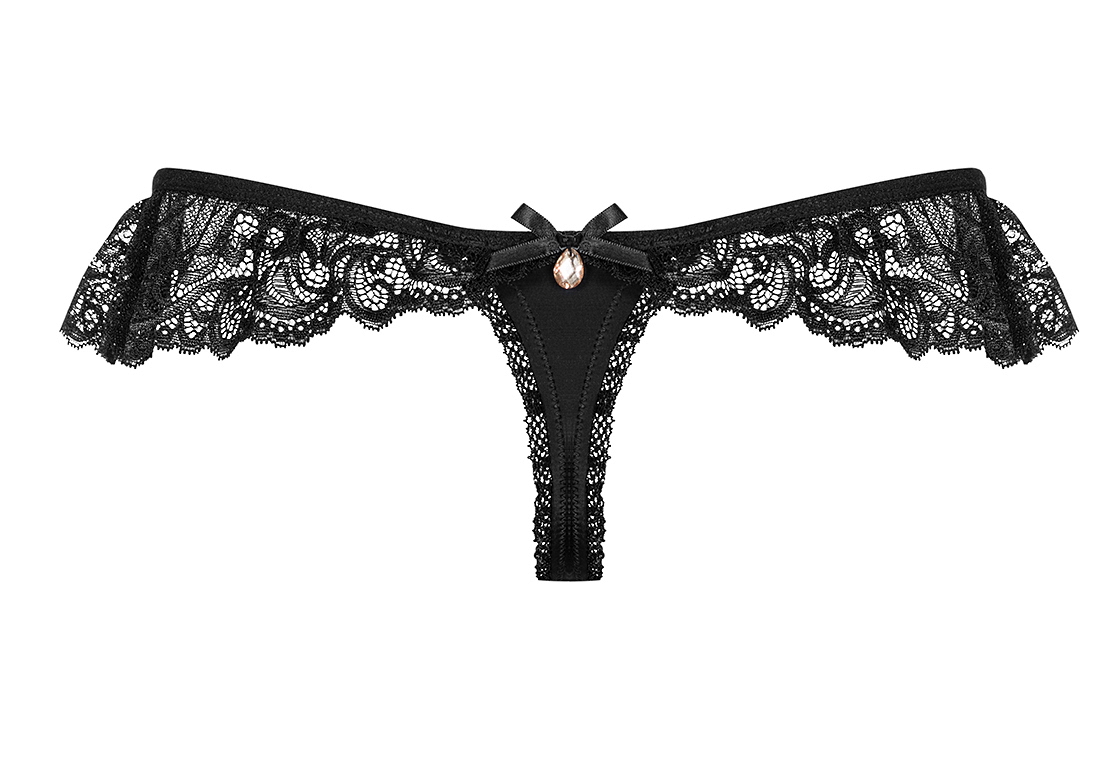 Сексуальные стринги с красивой кружевной оборкой с очаровательным украшением сзади.