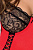 В комплекте красные атласные трусики-стринги и кружевные нарукавнички с красной шнуровкой.