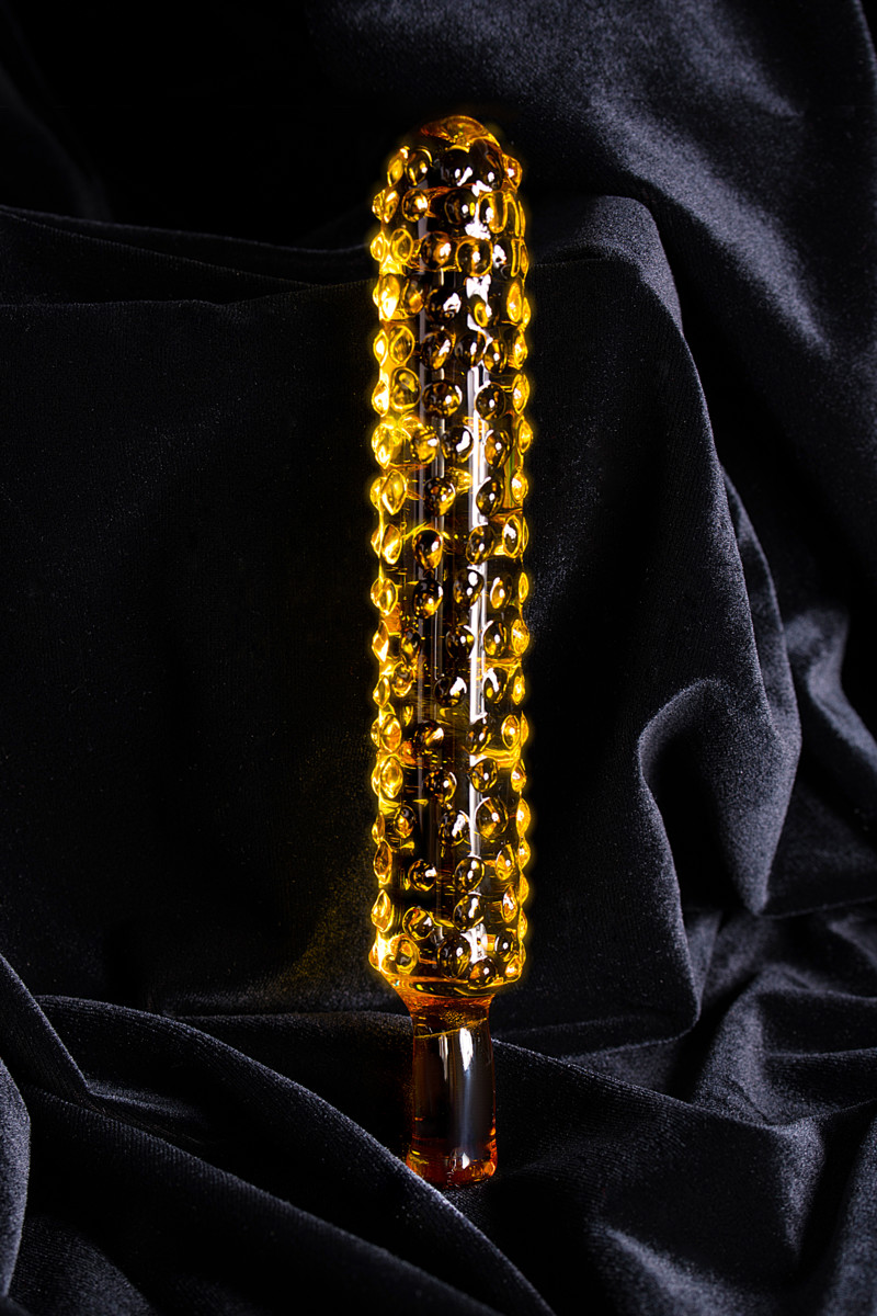 Стеклянный жезл для вагинальной/анальной стимуляции с массажными точками по всей длине игрушки.