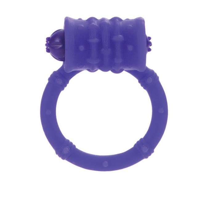 Вибрирующее кольцо фиолетового цвета на основание пениса из гипоаллергенного силикона. Шелковистое и упругое на ощупь.