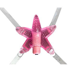 Стимулятор клитора розового цвета с 7 степенями вибрации в виде морской звезды имеет специальную форму, учитывающую анатомические особенности женщины. Крепится к телу при помощи прозрачных силиконовых ремешков, и воздействует непосредственно на самую эрогенную зону - клитор. Работает от трех батареек типа "таблетка", батарейки в комплекте.