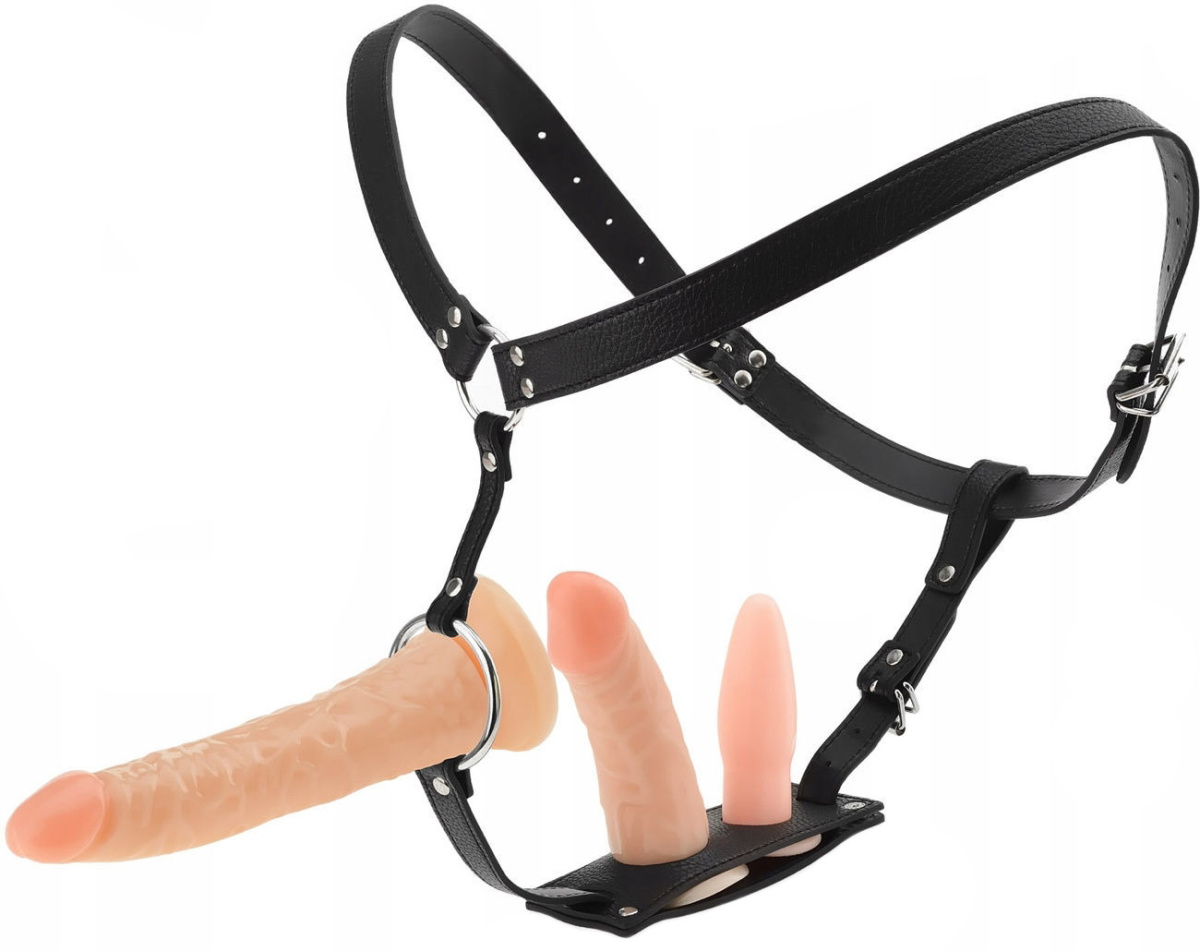 Не думайте, что Вы получите лишь моральное удовлетворение от полового акта, ведь ремень оснащен съемным страпоном, анальной и вагинальной втулками!