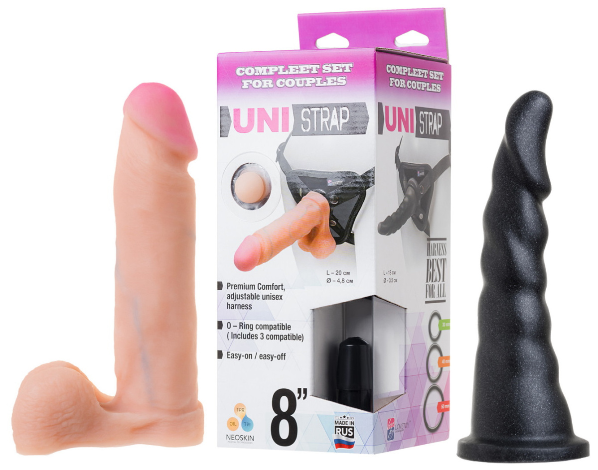 Отличный страпон, который сможет занять достойное место среди любимых секс-девайсов. В наборе идет две сменные насадки, которые так же можно использовать отдельно от страпона - в качестве фаллоимитаторов!