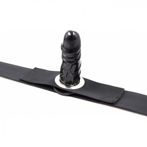 Фаллос на присоске, выполненный из качественного силикона черного цвета, прочно крепится под кольцо на ремне. Ремень же надежно фиксируется на бедре и имеет универсальный размер, который регулируется с помощью ремешка.