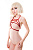 Блестящие красные ленты переплетаются в звезду в области декольте. Открытая одежда будет выгодно подчеркнута таким аксессуаром.