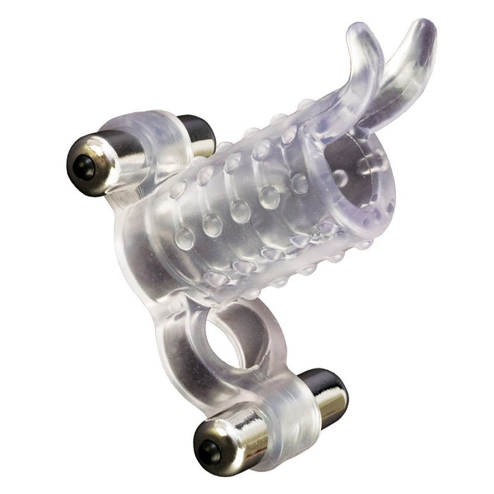 Бесконечно качественный секс возможен! Прозрачная насадка на пенис с двумя вибро-элементами - для него и для нее, петля для мошонки и тонкие мягкие усики для стимуляции клитора! В комплекте две водонепроницаемые вибропули, их можно использовать вместе и по отдельности. Батарейки в комплекте.